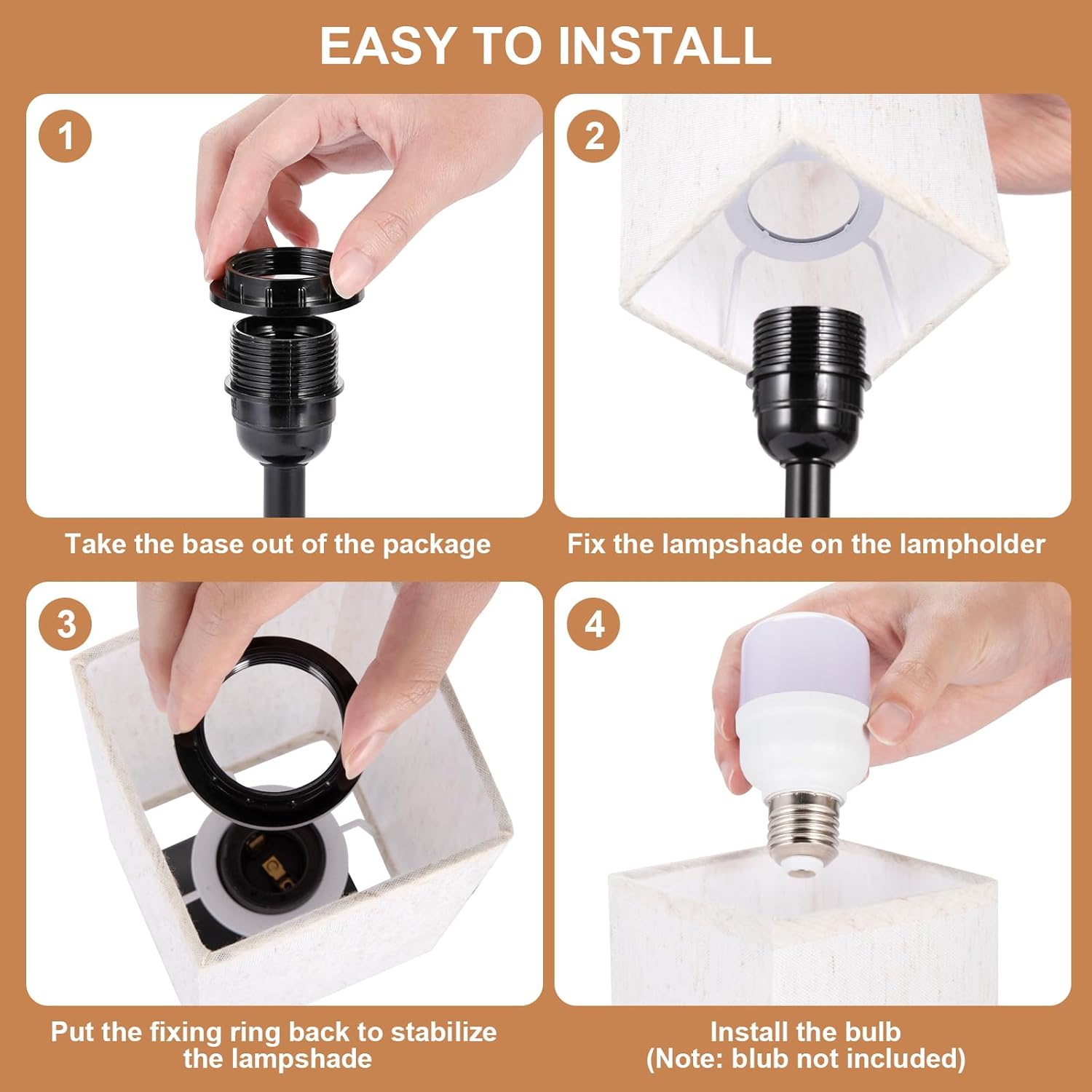 Material: Metal base with linen fabric shade