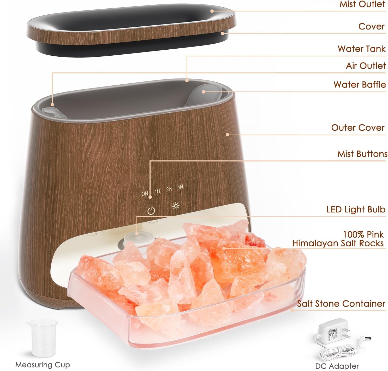 Dual Function: Works as an essential oil diffuser and Himalayan salt therapy lamp.