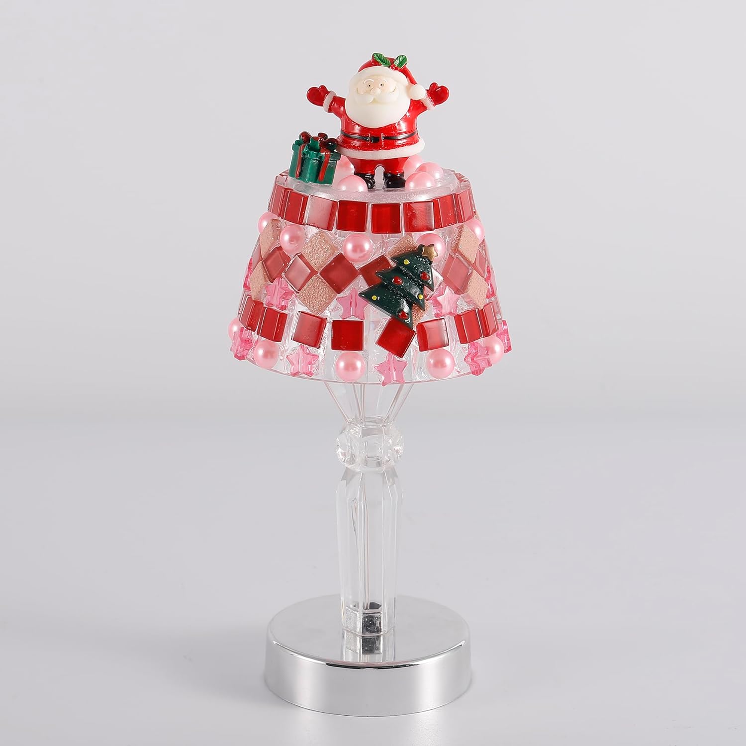 Bring festive warmth and charm to any room with the SantaGlow Mosaic Table Lamp – a handmade, push-button night light that glows with cozy holiday spirit. Its Santa Claus design and red mosaic shade make it a standout piece for Christmas décor or a thoughtful seasonal gift.